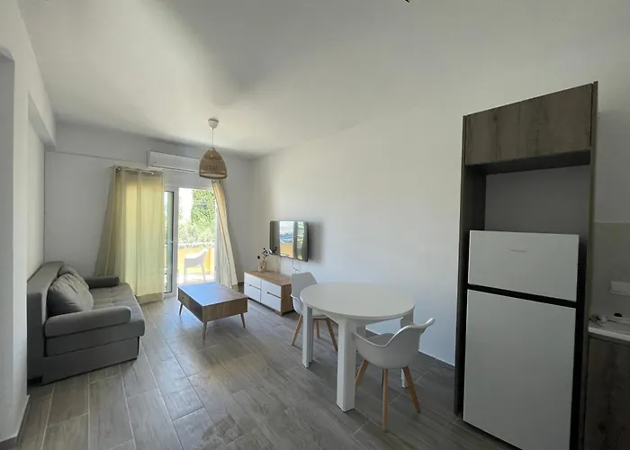 ベッドル-ム1室のGreen Bay Cosy Escapeアパ-トには設備の整った台所が備わっています. Protara - Kavo Gkreko Ave. - Vyzakiasバス停は200メ-トルほどの距離にあります.
